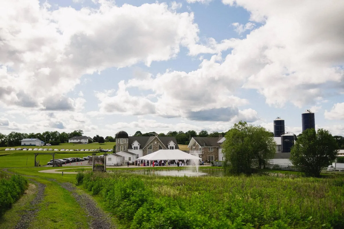 Exchange your vows surrounded by the sweeping beauty of Chelsea Sun Inn’s 200-acre estate. Our mountaintop ceremony site offers panoramic views of rolling farmland, the private lake, the Delaware Water Gap, and the Appalachian Mountains — a setting that feels both intimate and extraordinary. Whether you envision a spring ceremony framed by lush greenery, a summer celebration under wide-open skies, or a fall backdrop of golden foliage, every season here sets the stage for a breathtaking “I do.”