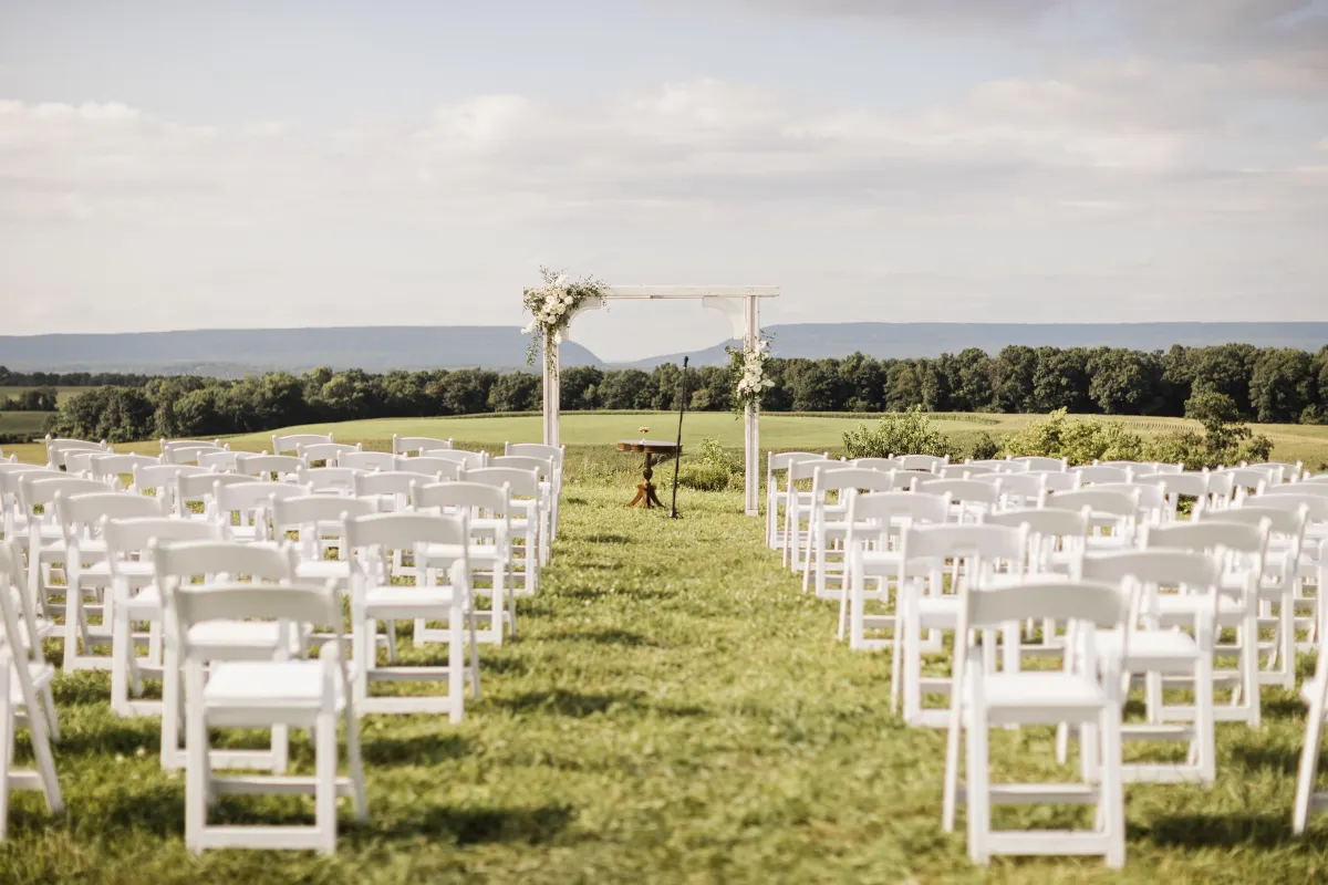 Exchange your vows surrounded by the sweeping beauty of Chelsea Sun Inn’s 200-acre estate. Our mountaintop ceremony site offers panoramic views of rolling farmland, the private lake, and the Appalachian Mountains — a setting that feels both intimate and extraordinary. Whether you envision a spring ceremony framed by lush greenery, a summer celebration under wide-open skies, or a fall backdrop of golden foliage, every season here sets the stage for a breathtaking “I do.”
